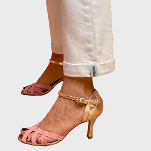 Féminine. Élancée. Subtile. Amandine évoque la tendresse des beaux jours avec son ton rose poudré et sa finition légèrement métallisée. Les fines brides croisées et la bride cheville élèvent la silhouette sans l’alourdir. Son talon fin allonge la jambe avec grâce tout en conservant une élégance naturelle.