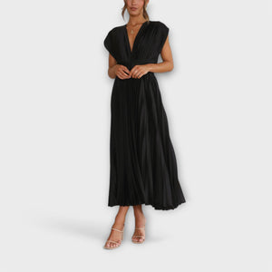 Élégance intemporelle : décolleté en V et plis fluides pour un look classique et raffiné.